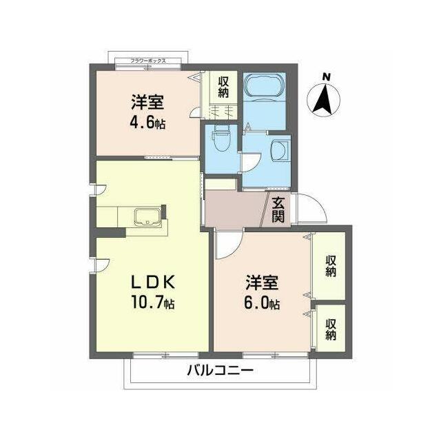 2LDK(LDK10.7帖 洋室6.0帖 洋室4.6帖) |